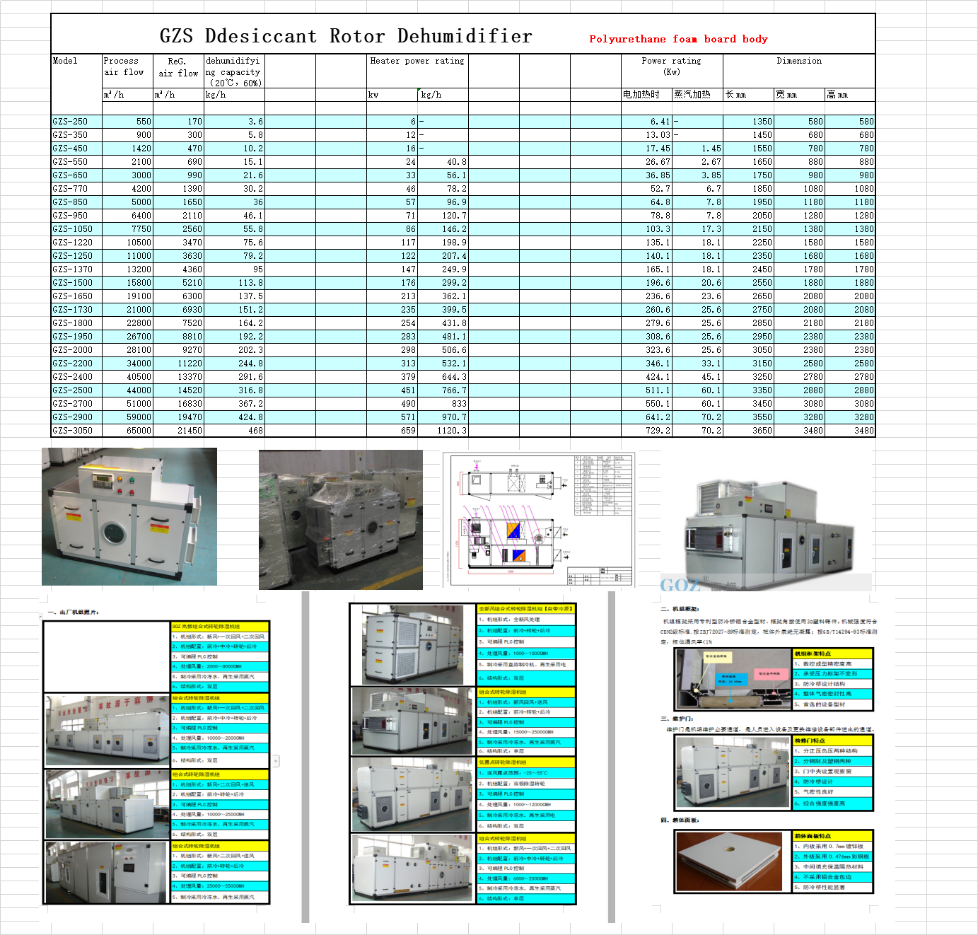 低露點轉(zhuǎn)輪除濕機采用進口的硅膠、分子篩蜂窩式吸附干燥轉(zhuǎn)輪,該轉(zhuǎn)輪以陶瓷纖維或玻璃纖維為基材,利用特殊化學方法合成,將硅膠和分子篩均勻結晶在基材上,使其具有極強的吸附能力。潮濕空氣經(jīng)過轉(zhuǎn)輪,濕氣被有效吸收,過濾分離出來的空氣被徹底處理成超低露點空氣,其露點溫度可達-40℃以下。