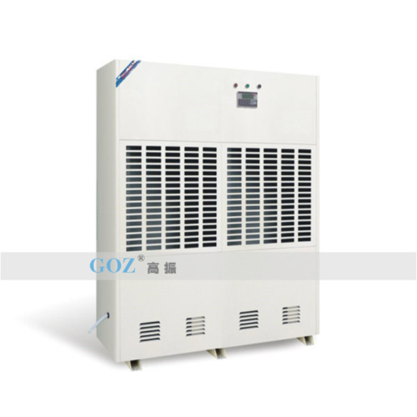 高振商用除濕機(jī)通過(guò)風(fēng)機(jī)將潮濕空氣抽入機(jī)器內(nèi)部,通過(guò)壓縮機(jī)制冷將蒸發(fā)器降溫至露點(diǎn)以下,潮濕空氣經(jīng)過(guò)蒸發(fā)器在表面凝結(jié)成水,匯集至接水盤(pán)后,流入水箱中,干爽空氣經(jīng)冷凝器重新加熱由出風(fēng)口排出,這樣不斷循環(huán)將室內(nèi)濕度降低。