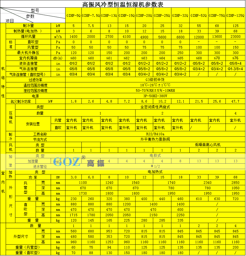 型號(hào):風(fēng)冷型恒溫恒濕機(jī)匯總